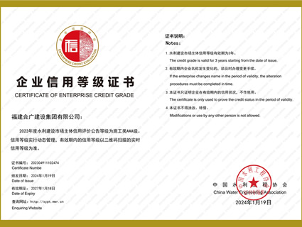 • 2024水利建設AAA企業信用等級證書
